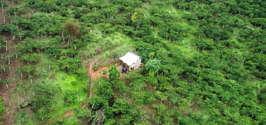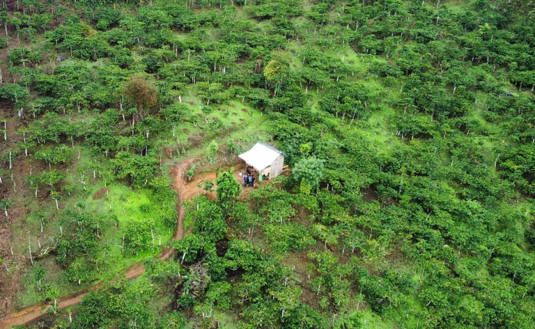 一栋白顶的小屋孤独地伫立在数公顷的咖啡林中央,周围没有任何邻居,只有漫山遍野的作物。这种“田间居住”模式虽然方便了农作看护,却极大地增加了公共服务投递的成本。