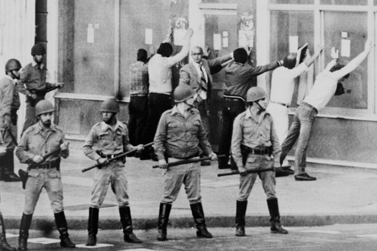 (1982年3月30日,在布宜诺斯艾利斯的反政府示威中拘留的男子。在阿根廷1976-1983年的独裁统治期间,至少有3万人被捕、遭受折磨并被‘消失’。)