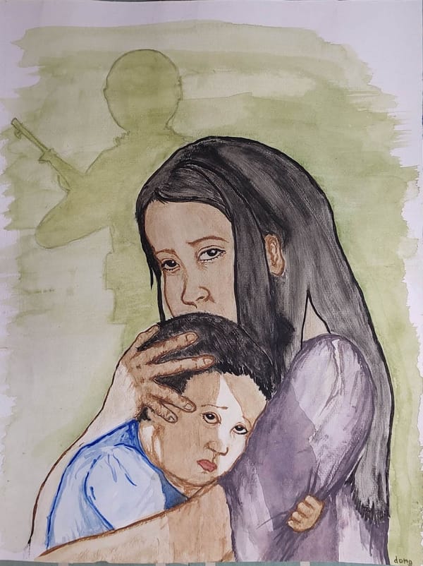 她被带进军营,扔进一间没有窗的房间。士兵轮流进来,有人踢桌子,有人摔水壶。一个声音冷冷地问:“你是不是新人民军的?”没人等她回答,椅子被拖到她背后,强迫她长时间跪着,膝盖很快麻木。有人把一把手枪和雷管扔到地上,恶狠狠地说:“承认吧,这都是你的,你就是共产党。”